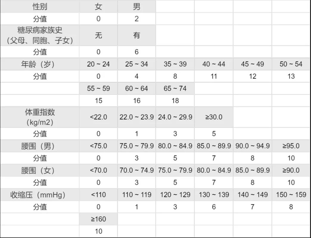 如果你还没有过 35 岁,那么可以对照以下表格,如果得分超过 25 分,那么请你也一定在每年的体检中增加血糖检测。