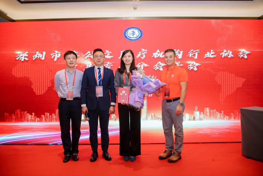 在周学军会长的主持下,进行了深圳市非公立医疗机构行业协会新晋副会长聘书颁发仪式。成官迅教授和徐坚民教授分别为杨全林主任,杨景洲主任颁发非公立医疗机构放射分会副会长聘书。
